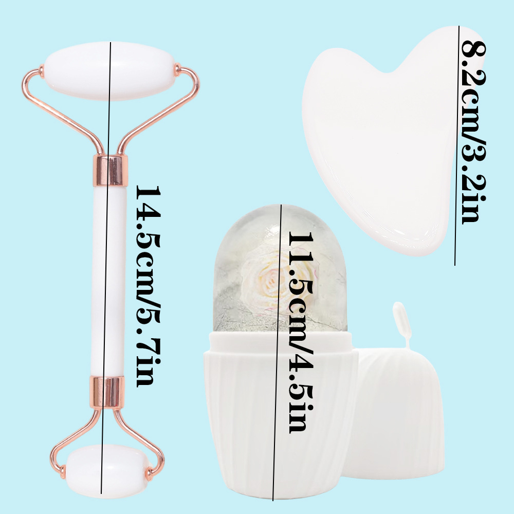 3-in-1 Facial Tools: Combines ice tray, heart-shaped gua sha, and double-headed roller for versatile skincare.